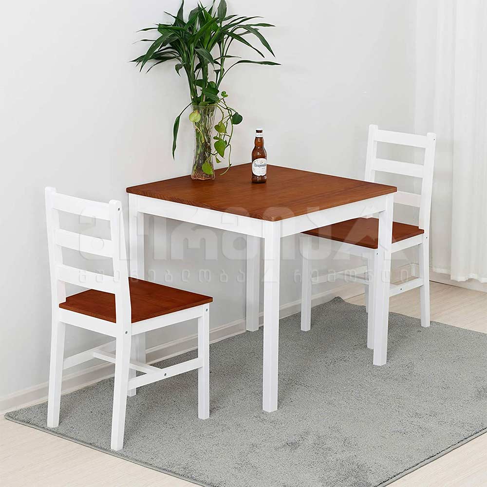 მაგიდა 2 სკამით 75*75*73 თეთრი, თაფლისფერი