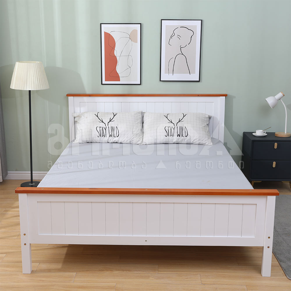 საწოლი ორადგილიანი მთლიანი დაბ. 200*150 თეთრი, თაფლისფერი